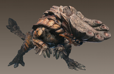 強靭な顎を鎚のように振り下ろし火薬岩を起爆させながら攻撃する様から【爆鎚竜】と呼ばれている。